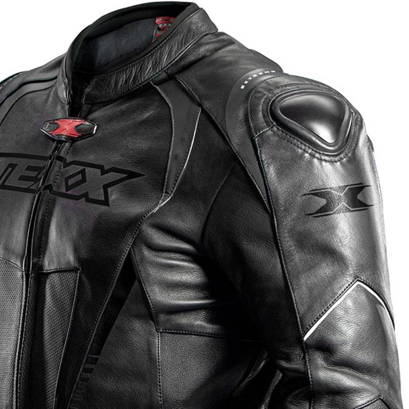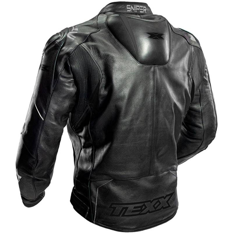A jaqueta esportiva TEXX Sniper é feita em couro e oferece muita segurança aos motociclistas. Além de protetores EVOLUTION CE nos ombros e cotovelos, ela apresenta o cupim com design inovador, que contribui também para a aerodinâmica.
